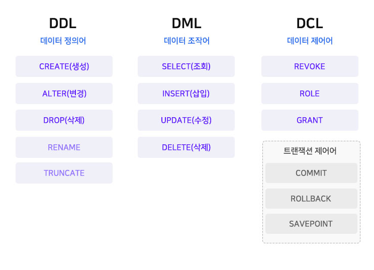 | 관계데이터베이스 언어 1. SQL - SQL(구조적 질의어) : IBM에서 개발된 데이터베이스에 사용되는 언어 - SQL의 특징 관계대수와 관계해석을 기초로한 고급 데이터 언어 이해하기 쉬운형태 대화식 질의어로 사용 가능 데이터정의, 데이터 조작, 제어 기능 제공 COBOL, C, PASCAL 등의 언어에 삽입 레코드 집합 단위로 처리 비절차적 언어 SQL정의어 - 스키마, 도메인, 테이블, 뷰, 인덱스를 정의하거나 제거하는데 사용 CREATE문 = 스키마, 도메인, 테이블, 뷰, 인덱스 정의에 사용 스키마 정의 = CREATE SCHEMA 스키마이름 AUTHORIZATION 사용자아이디 도메인 정의 = CREATE DOMAIN 도메인이름 데이터타입 테이블 정의 = CREATE TABLE 테이블명 ({열이름 데이터 타입 [NOT NULL][DERAULT 묵시값]} [RPIMARY KEY (열이름)] 제외가능 ....UNIQUE , FOREGIN KEY, ON DELETE, ON UPDATE, CHECK 등 조건입력가능 제외도 가능 ) 인덱스 정의 = CREATE INDEX 문에 의해 생성 시스템이 자동적으로 관리 CREATE [UNIQUE] INDEX 인덱스 이름 ON 테이블 이름 (열이름) ALTER 문 = 기존테이블에 대해 새로운 열의 첨가, 값의 변경, 기존 열의 삭제 등에 사용 ALTER TABLE 테이블 이름 ADD 열 이름 데이터 타입 ALTER TABLE 테이블 이름 ALTER 열 이름 SET DEFAULT 값 ALTER TABLE 테이블 이름 DROP 열 이름 CASCADE ※ ADD : 열추가, ALTER : 값 변경, DROP : 열 삭제 DROP 문 = 스키마, 도메인, 테이블, 뷰, 인덱스 제거시 사용(전체 삭제) DROP SCHEMA 스키마 이름 [CASCADE OR RESTRICTED] DROP DOMAIN 도메인 이름 [CASCADE OR RESTRICTED] DROP TABLE 테이블 이름 [CASCADE OR RESTRICTED] DROP INDEX 인덱스 이름 ※ CASCADE : 삭제할 요소가 참조 중이면 삭제 되지 않는다. ※ RESTRICTED : 삭제할 요소가 참조 중이더라도 삭제 된다. ![]() ![]() SQL 조작어 SELECT(검색문) SELECT 열 이름(검색 대상) FROM 테이블이름 WHERE 조건 GROUP BY 열이름 HABING조건 ORDER BY 열이름 ASC or DESC GROUP BY : 그룹으로 나누어 준다. HAVING : 그룹에 대한 조건 ORDER BY : 정렬 수행 부분 매치 질의문 : % -> 하나 이상의 문자, _ -> 단일문자 ※부분 매치 질의문에서는 = 대신 LIKE 사용 널(NULL)값 비교 시는 = 대신 IS (또는 IS NOT)을 사용 집계함수 : COUNT, SUM, AVG, MAX, MIN INSERT(삽입문) INSERT INTO 테이블(열이름) VALUES(열값_리스트) 하나의 테이블만을 대상으로 한다 NULL 값을 입력할수 있고 부속 질의어를 포함 할수 있다. 모든 열의 값을 입력할 때는 테이블 명 다음의 열 이름을 생략할 수 있다. UPDATE(갱신문) -기존 레코드 열값을 갱신할 경우 사용 UPDATE 테이블 SET 열 이름 = 변경 내용 WHERE 조건 DELETE(삭제문) - 기존 테이블의 행을 삭제할 경우 사용 DELETE FROM 테이블 WHERE 조건 SQL뷰 하나 이상의 테이블로부터 유도되어 만들어진 가상 테이블 실행시간에만 구체화 되는 특수한 테이블 특징 - 뷰가 정의된 기본 테이블이 제거(변경)되면 뷰도 자동적으로 변경(제거)된다. - 외부 스키마는 뷰와 기본 테이블의 정의로 구성된다. - 뷰에 대한 검색은 기본테이블과 거의 동일(삽입, 삭제, 갱신은 제약) - DBA는 보안 측면에서 뷰를 활용할 수 있다. - 뷰는 CREATE문에 의해 정의되며, SYSVIEWS에 저장된다. - 한번 정의된 뷰는 변경할 수 없으며, 삭제한 후 다시 생성 - 뷰의 정의는 ALTER문을 이용하여 변경할 수 없다. - 뷰를 제거할때는 DROP문을 사용한다. 장단점 장점 논리적 독립성 제공 데이터 접근 제어로 보안가능 사용자의 데이터 관리를 간단하게함 하나의 테이블로 여러개의 상이한 뷰를 정의 단점 독자적인 인덱스를 가질수 없다. 정의를 변경할 수 없다. 삽입, 삭제, 갱신, 연산에 많은 제약이 따른다. 뷰의 생성 CREATE VIEW 뷰 이름(열 이름 리스트) AS SELECT 문 WITH CHECK OPTION - AS SELECT문은 일반 검색문과 같지만 UNION이나 ORDER BY를 사용할 수 없다. - WITH CHECK OPTION절은 이뷰에 대한 갱신이나 삽입 연산이 실행 될때 뷰 정의 조건을 위해하면 실행을 거절 시킨다는것을 명세한다. 뷰의제거 - 뷰의 정의는 ALTER문을 이용하여 변경할수 없다. - 뷰 제거할 대는 다음과 같은 형식의 DROP문을 사용한다. DROP VIEW 뷰이름{RESTRICT OR CASCASE} 3. Embedded(내장) SQL - SQL은 단말기를 통해 대화식으로 사용될 수도 있지만, COBOL, C, JAVA와 같은 호스트 프로그래밍 언어로 작성되는 응용프로그램 속에서 내장해서 사용할 수도 있다. 응용 프로그램 속에 내장해서 사용하는 SQL을 내장 SQL이라고 한다. 응용프로그램의 특징 - EXEC SQL을 앞에 붙임 - 내장 SQL실행문은 호스트 실행문이 나타나는 어느 곳에서나 사용가능 - SQL문에 사용되는 호스트 변수는 콜론(:)을 앞에 붙임 - 호스트 변수와 대응하는 필드의 데이터 타입의 일치 - 호스트 변수와 데이터베이스 필드의 이름 같아도 무방 - SELECT에 의한 검색 결과는 튜플로 구성된 테이블이지만 호스트 언어들은 한 번에 하나의 레코드만 취급(커서의 필요성) Cursor(커서) -검색 결과 테이블의 튜플들을 순서대로 지시 -DECLARE : 커서와 관련된 SQL문을 정의 -OPEN: 커서를 개방 -FETCH : 커서를 가리키는 결과 테이블의 한 튜플을 호스트 변수로 가져옴 -CLOSE : 커서를 폐쇄 |