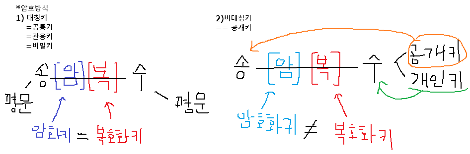 | 암호화 1. 암호화(Encryption)의 정의 - 평문(Plain Text)을 암호화 알고리즘을 통해 암호화된 문장을 생성하여 비 인가자(공격자) 로부터 정보를 보호하는 기술 - 평문을 암호문으로 바꾸는 것이며, 이 암호문을 다시 평문으로 바꾸는것은 복포화(Decryption)라고 한다. ![]() ※ 암호학(Cryptography) : 안전하게 정보를 전달하기 위하여 평문을 암호문으로 바꾸고 인가된 사람만이 이 암호문을 다시 평문으로 바꾸어 정보를 볼 수 있도록 하는 수학을 응용한 과학분야이다. 암호화 : C = Ek(P) 평문 P를 키 k를 이용하여 암호화(E)를 통해 암호문 C를 얻는다. 복호화 : P = Dk(C) 암호문 C를 키 k를 이용하여 복호화(D)를 통해 평문 P를 얻는다. P : 평문(Plaintext), C : 암호문(Ciphertext), E : 암호화(Encrypt), D : 복호화(Decrypt) 2. 암호의 역사 - 암호의 기원은 약 BC2000년에 이집트인들이 사용하던 상형문자에서 시작하였다. - 산업사회의 발달, 전쟁과 더불어 정보보호를 위한 암호 사용이 급격하게 증가하였으며, 20세기에 들어오면서 무선통신기기의 발달로 암호 사용이 가속화 되었다. 고대암호 - 고대시대의 암호 기술은 평문의 위치를 단순 이동시키거나 특정 문자를 다른 문자로 대치하는 방식을 사용하였다. 근대암호 - 두 차례의 세계대전으로 발달하기 시작한 근대 암호는 보다 진보된 복잡한 암호 기계를 이용한 암호 방식을 사용하였다. 현대암호 - 암호 방식에 따라 암호화와 복호화에 사용되는 키의 기능과 키의 분배 관리에 따라 크게 동일한 키를 사용하는 관용암호방식(대칭키) 과 수학적으로 연계된 서로 다른 두개키(비대칭키)를 사용하는 공개키 암호 방식으로 구분된다. 3. 대칭키(공통기) 암호방식 **DES, TDES(3DES), AES, SEES, ARIA, IDEA 암호화와 복호화에 동일한 키를 사용하는 비밀키 암호(secret key cipher) 방식은 공통키 암호(common key cipher)또는 암호화와 복호화 과정이 대칭적이서 대칭키 암호(symmetric key chipher)라고 불린다. 1) DES - 1977년 미국의 연방정보처리표준규격(FIPS)르오 채택된 대칭 암호이다. DES는 미국뿐만 아니라 전 세계의 정부나 은행 등에서 널리 이용되어 왔다. 컴퓨터의 발전으로 현재는 전사 공격으로도 해독될수 있다. - 페이스텔 구조 / 블록길이 : 64비트 / 키길이 : 56비트 / 라운드 수 : 16라운드 2) 트리플 DES(triple-DES) - 트리플 DES는 DES보다 강력하도록 DES를 3단 겹치게 한 암호 알고리즘 이다. 3) AES(Advanced Encryption Standrad) - 미국 연방표준 알고리즘으로 DES를 대신하는 차세대 표준 암호화 알고리즘으로 미국 산무성 산하 NIST 표준 알고리즘 - SPN구조 / 블록 길이 : 128비트 / 키길이 : 128, 192, 256, 비트 / 라운드 수 : 10, 12, 14 4. 비대칭키(공개키) 암호방식 **RSA(소인수분해), ELGAMAL(이산대수), ECC(타원곡선) 공캐기 암호 방식은 암호화에 사용되는 키와 복호화에 사용되는 키가 서로 다른 방식이다. 키 쌍을 이루며 암호화용 키는 공개키 (PUBLIC KEY), 복호화용 키는 비밀키(PRIVATE KEY)로 불리워진다. - 공개키 암호 방식은 대수학과 계산량 이론을 교묘히 응용한 방식으로 그 안전성은 수학적 문제를 풀기 위한 복잡성을 근거로 하고 있다. - 공개키 암호에서 근거로 하는 수학적 문제로 대표적인것 3가지 I. 정수의 소인수분해의 복잡성을 이용하는 것(RSA 암호 등) II. 정수의 이산대수문제의 복잡성을 이용하는 것(Elgamal 암호 등) III. 타원 곡선 상의 이산대수문제의 복잡성을 이용하는 것 (타원곡선 암호 등) |