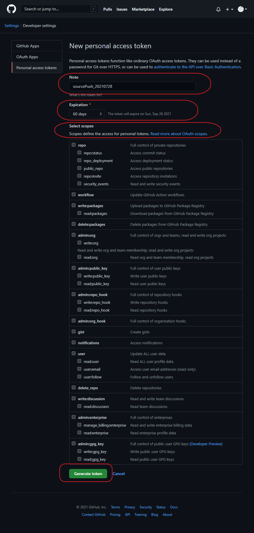 선택후 generate token을 클릭해 토큰을 만들어 줍니다.!