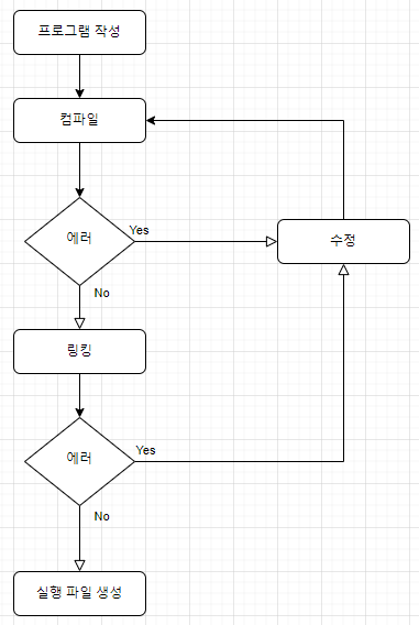 컴파일/링크 → 소스코드를 실행 가능한 코드로 변환하고 문법 검사